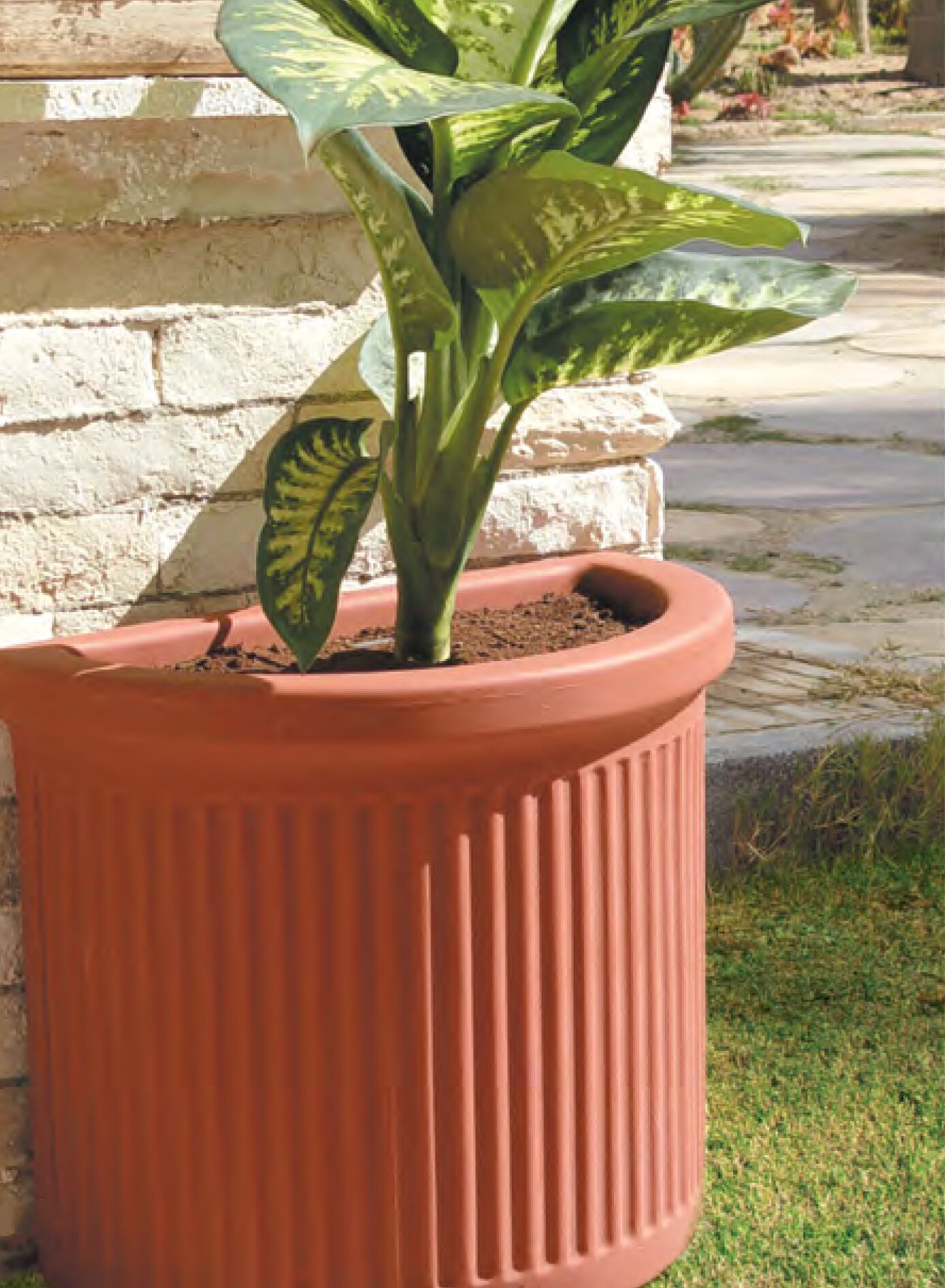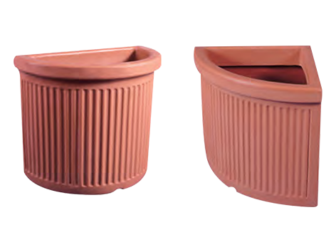 الوعاء الركني (يمين): له شكل ربع دائري أو زاوية، مصمم ليتناسب بشكل مريح في زوايا الغرف أو الحدائق.