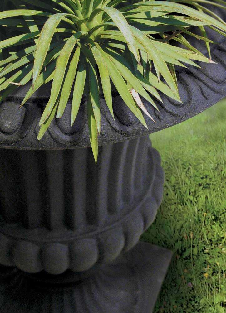 فخامة اللون الفحمي : يتميز هذا الوعاء بلون أسود فحمي غير لامع، مما يعطي تبايناً مذهلاً مع أوراق الشجر الخضراء والزهور الملونة، ويضيف لمسة عصرية على التصميم الكلاسيكي.