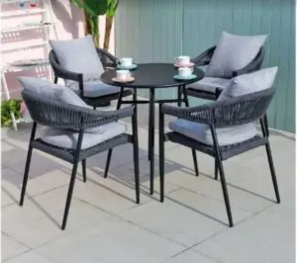طقم احبال 5 قطع (4 كرسي + طاولة) للبلكونة الخارجية أو أثاث الحديقة. ابعاد : الكرسي 60*60 ؛ الطاولة قطرها 60