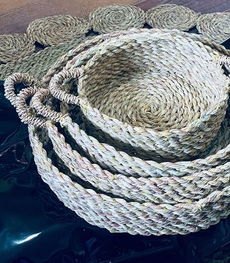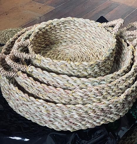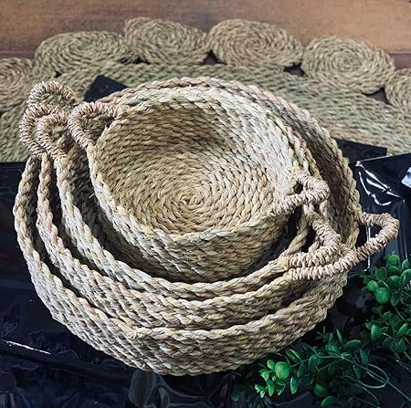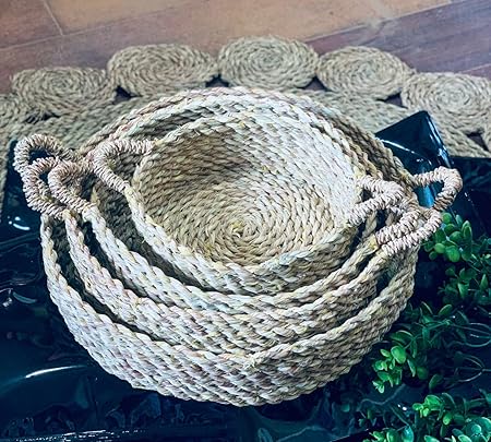 Give your home a natural and elegant touch with our handcrafted round basket set, made from premium natural wicker. This set features three graduated sizes, making them perfect for serving, storage, or adding a cozy rustic charm to any corner of your home. Each basket is meticulously woven with sturdy handles for easy carrying and a practical round design that fits beautifully on tables, in kitchens, or living rooms.