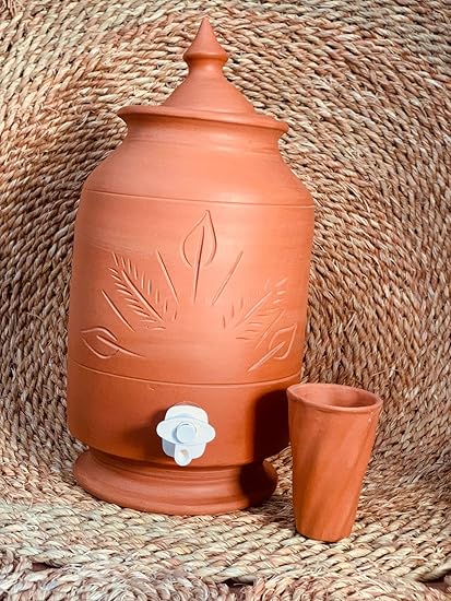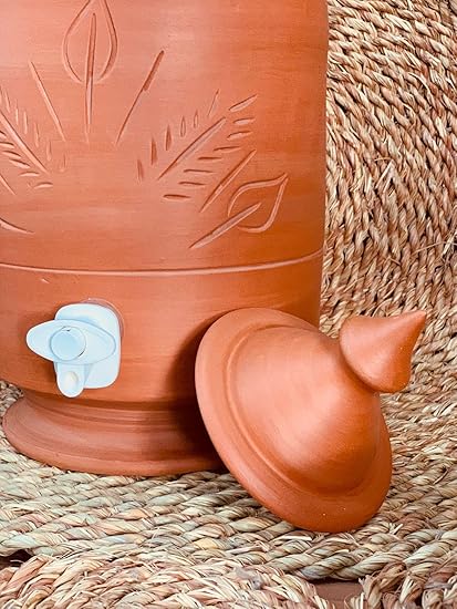 This authentic, handmade Zeer is crafted from high-quality natural clay, featuring a traditional design adorned with beautiful patterns that add a touch of heritage to any space. It utilizes the natural properties of clay to cool water healthily and naturally without electricity, making it the perfect choice for lovers of rustic style and eco-friendly products.