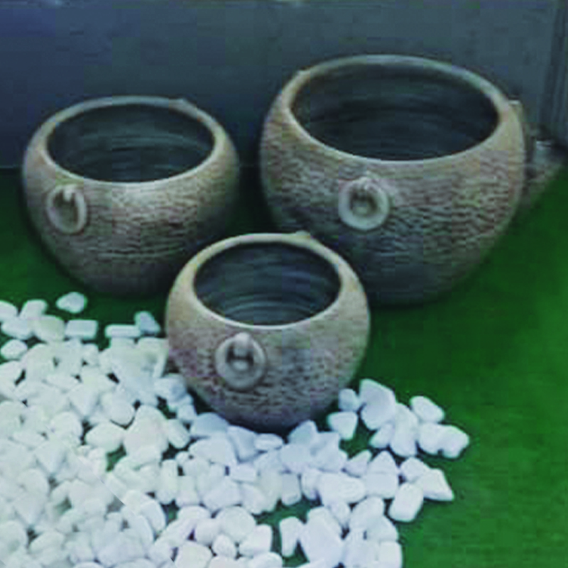 Decorated Pottery pot with hands, Flower pots Outdoor& indoor, Planters with Drainage Hole, with gray color.