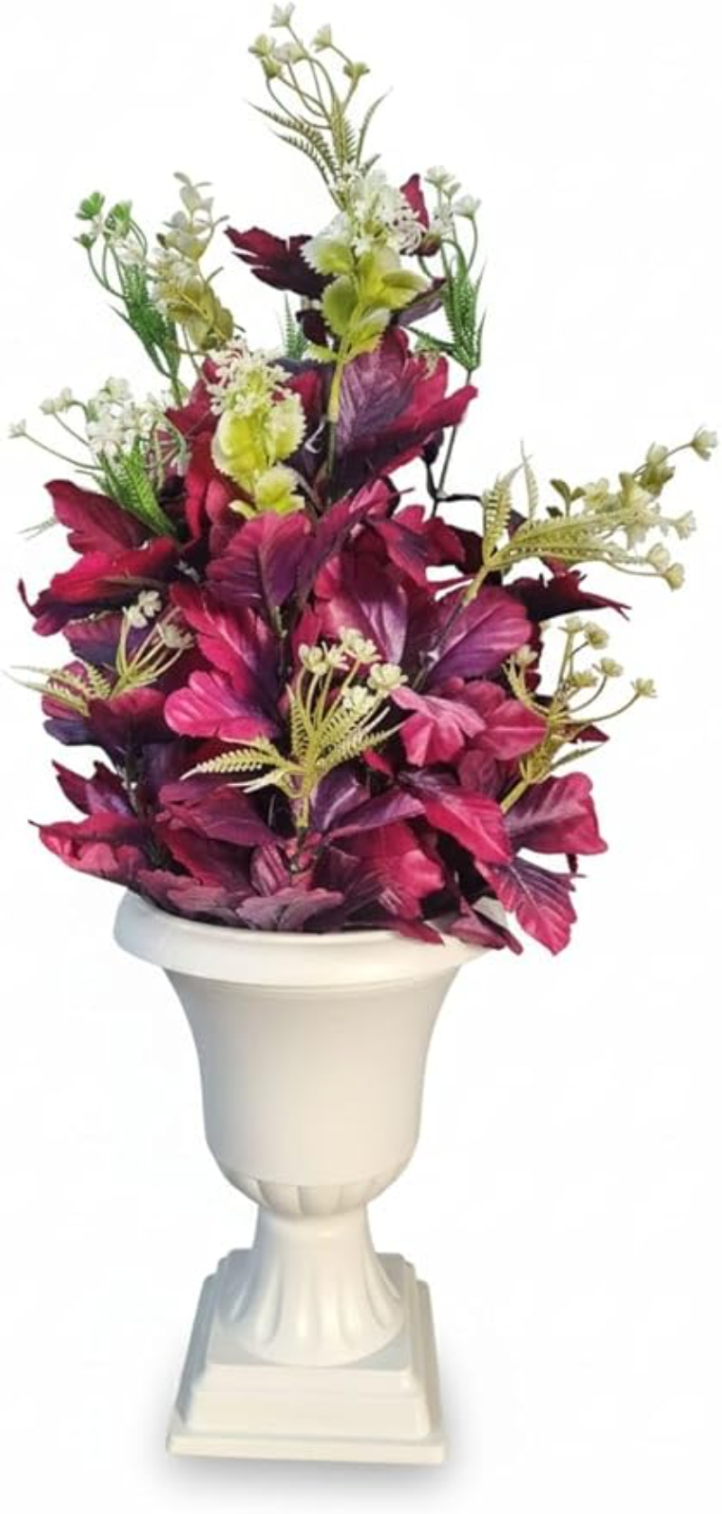 “Add a touch of elegance and natural beauty to your space with this exquisite artificial flower vase. Featuring a classic white design, this vase harmonizes perfectly with vibrant purple foliage and light green flowers, creating a stunning decorative piece that requires zero maintenance.”