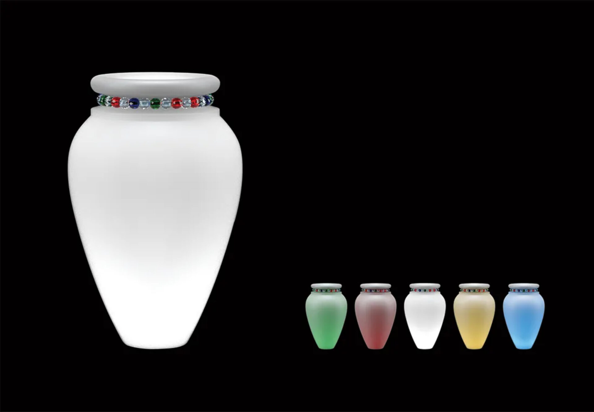 Rich Details: Each vase is adorned with a vibrant, multicolored crystal band around the neck, adding a touch of sparkle and joy that beautifully reflects light.