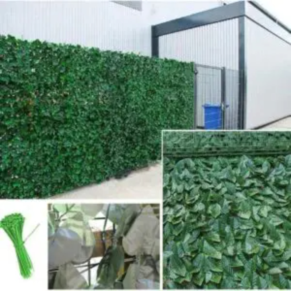 Artificial Ivy hedge is an alternative to traditional grown hedging which takes time to establish and requires continuous maintenance. Made from UV stabilized PVC, artificial Ivy hedge woven in to plastic mesh panels 250mm x 500mm. Panels Can be removed or interchanged to create unlimited shapes, heights & widths. Need 2M high, no problem, simply buy 2 x 1M high rolls ad clip together, Easy and effective. Quick and easy to install. Requires no maintenance. Please note: the backing grids can be seen from the front to some extent. Leaves are not present on all fixing nodes. Dimensions are approximate.